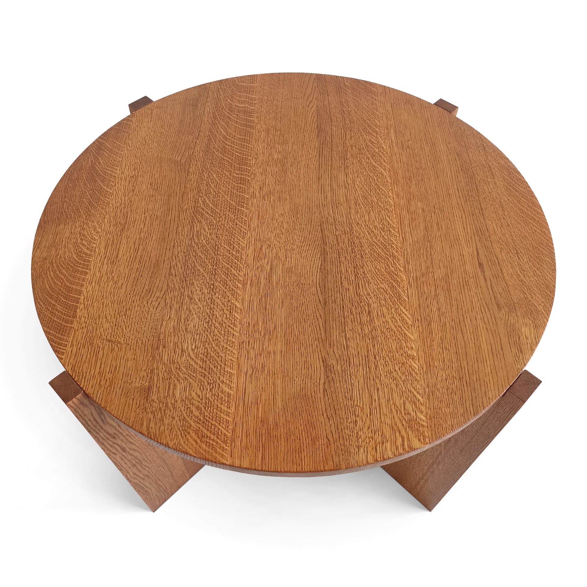 This oak coffee table is made up of a solid oak top, carefully selected by our craftsmen.