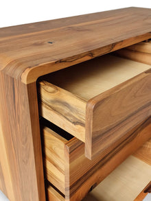 The Ami Walnut Chest of Drawers is a handcrafted, elegant piece of solid walnut. It offers a timeless design with ample storage space. The sideboard showcases the natural beauty of the wood's grain and is built to last with premium craftsmanship. Customisable in size, it's ideal for living or dining spaces, adding functionality and aesthetic appeal.