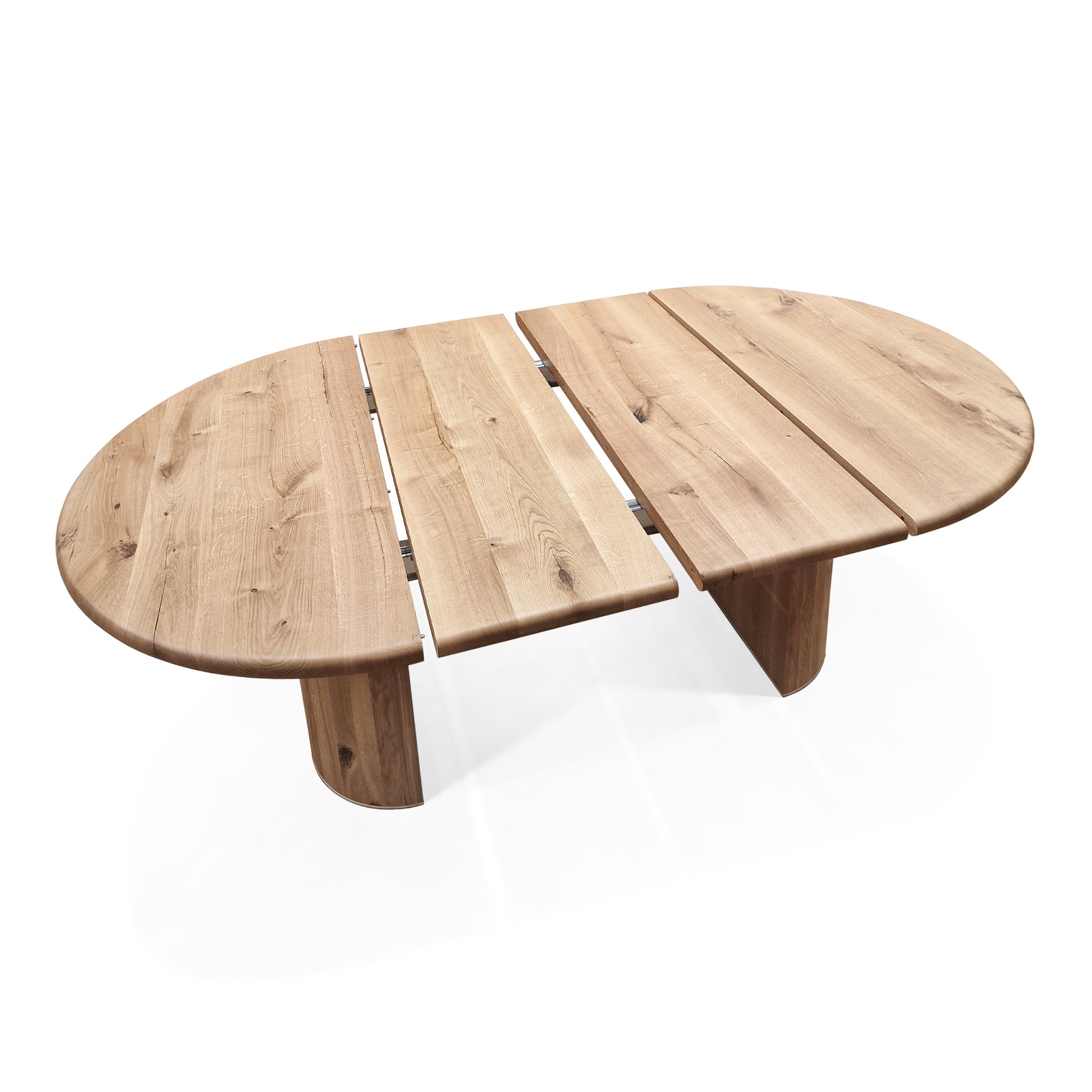 All our extension panels are made of solid planks and come from the same tree as the main table. Extended table has one uninterrupted beautiful grain.